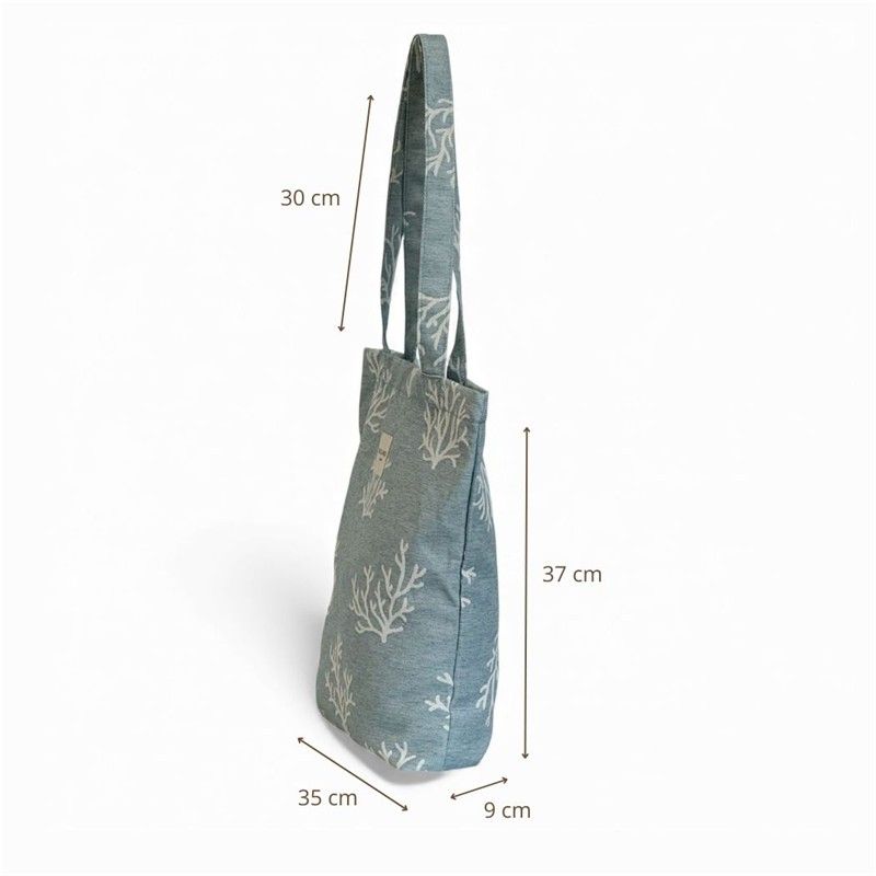 !Compacta, Cómoda y con Mucho Estilo¡ Si buscas una "tote bag" original, práctica y con personalidad, esta bolsa es tu nueva favorita. Está confeccionada en jacquard de alta calidad, su tejido resistente mantiene la forma y garantiza durabilidad. El estampado de coral en tono crudo sobre fondo azul clarito la convierte en el complemento perfecto para tus outfits. CIERRE SEGURO CON CREMALLERA. Incluye cremallera superior, ideal para llevar tus pertenencias protegidas. Es perfecta para el día a día, para ir a trabajar, de compras o escaparte a la playa sin preocupaciones. FÁCIL DE LAVAR Y MANTENER. Sabemos que las bolsas del día a día necesitan practicidad. Por eso esta "tote bag" es fácil de lavar, pensada para acompañarte en todos tus planes sin complicaciones. CONFECCIONADA EN ESPAÑA. Elaborada con telas nacionales y fabricación en España, apostando por la calidad, el cuidado en los detalles y la producción responsable.